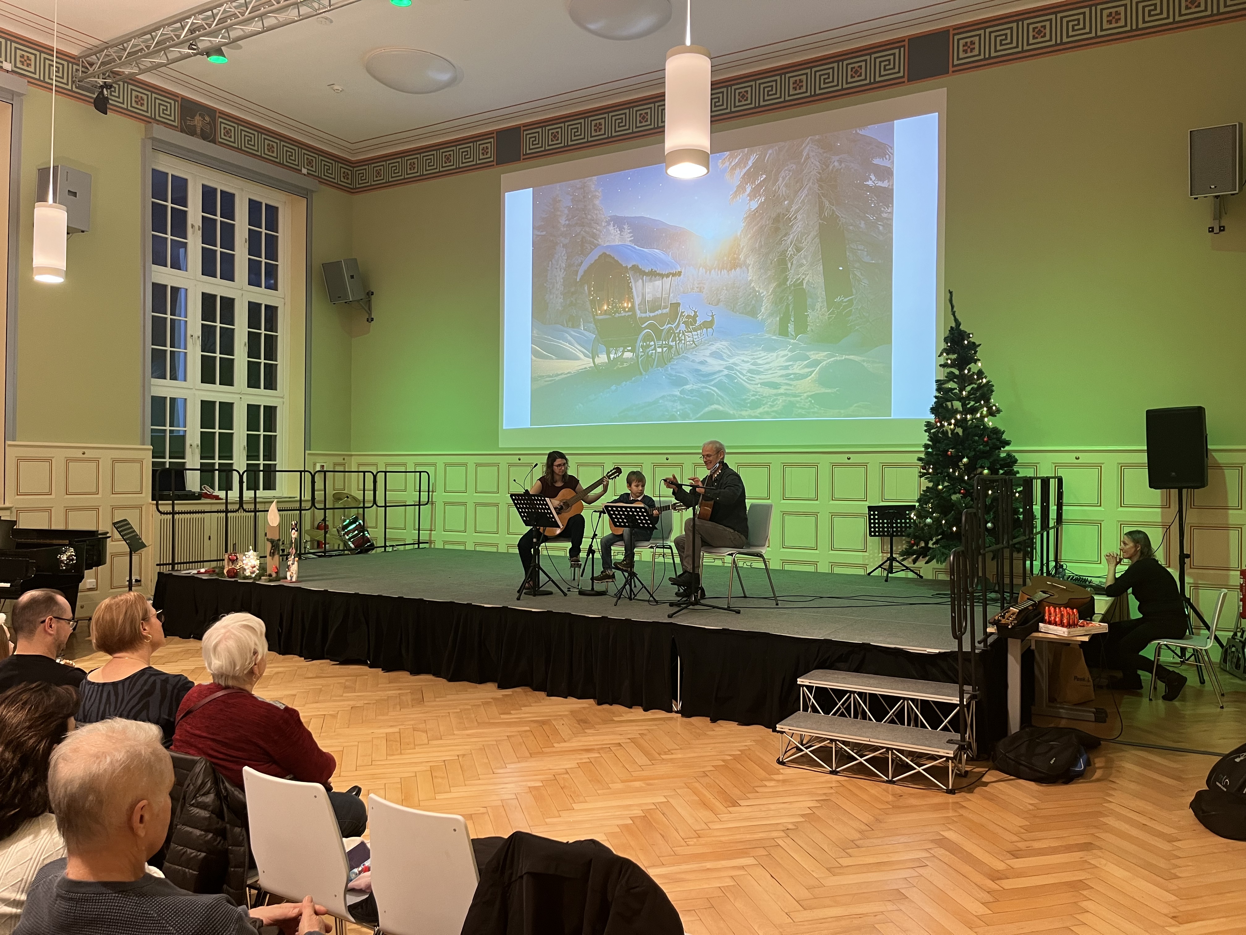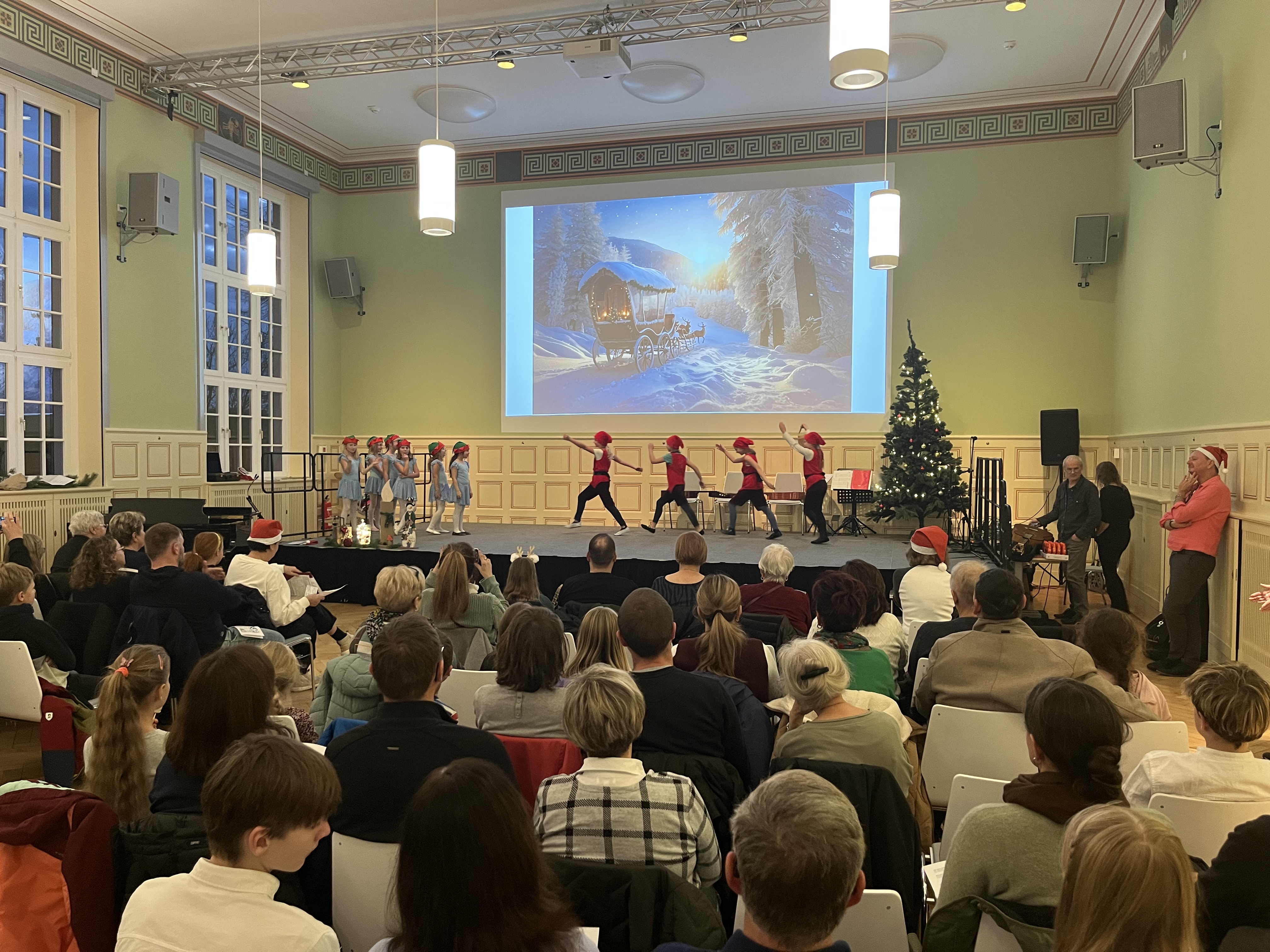 Im Mittelpunkt des Konzerts standen die kleinen Sängerinnen und Sänger sowie jungen Instrumentalistinnen und Instrumentalisten, die mit großer Begeisterung und sichtbarer Freude ihr musikalisches Können präsentierten. Weihnachtslieder und festliche Musik erklangen und zauberten eine besonders herzliche Atmosphäre, die den Saal erfüllte. Begleitet wurden die Auftritte vom Besuch des Weihnachtsmannes, der für leuchtende Augen und große Aufregung bei den jüngsten Mitwirkenden sorgte.